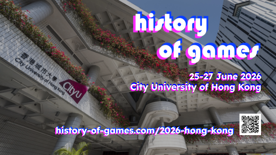 Submissions of a 500-word abstract (excluding references) to the Histories of Games 2026 conference are welcome and will be double-blind peer-reviewed. Please make sure the submission is anonymous and that references to your own work, if used, are included in a way not allowing the identification of the author (i.e. avoid saying “in my previous work [citation]”).
